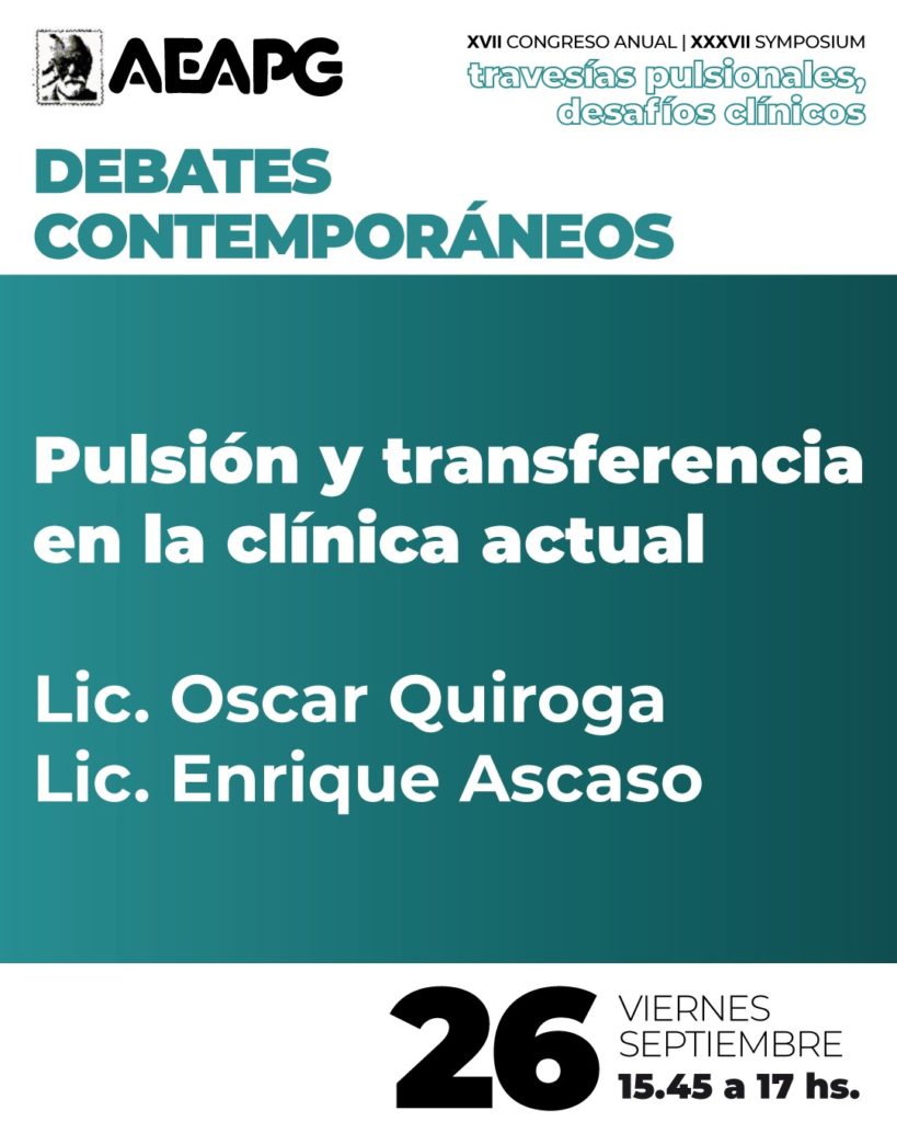 - PULSIÓN Y TRANSFERENCIA EN LA CLÍNICA ACTUAL / Lic. Oscar Quiroga – Lic. Enrique Ascaso