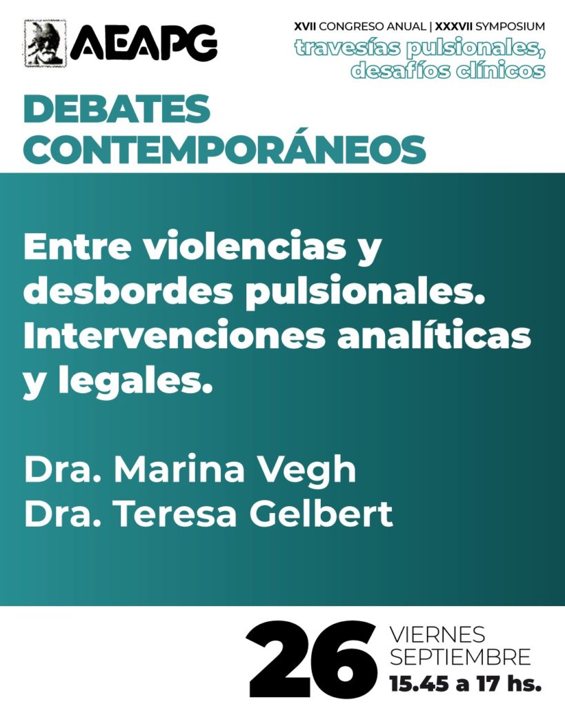 - ENTRE VIOLENCIAS Y DESBORDES PULSIONALES. INTERVENCIONES ANALÍTICAS Y LEGALES / Dra. Marina Vegh – Dra. Teresa Gelbert