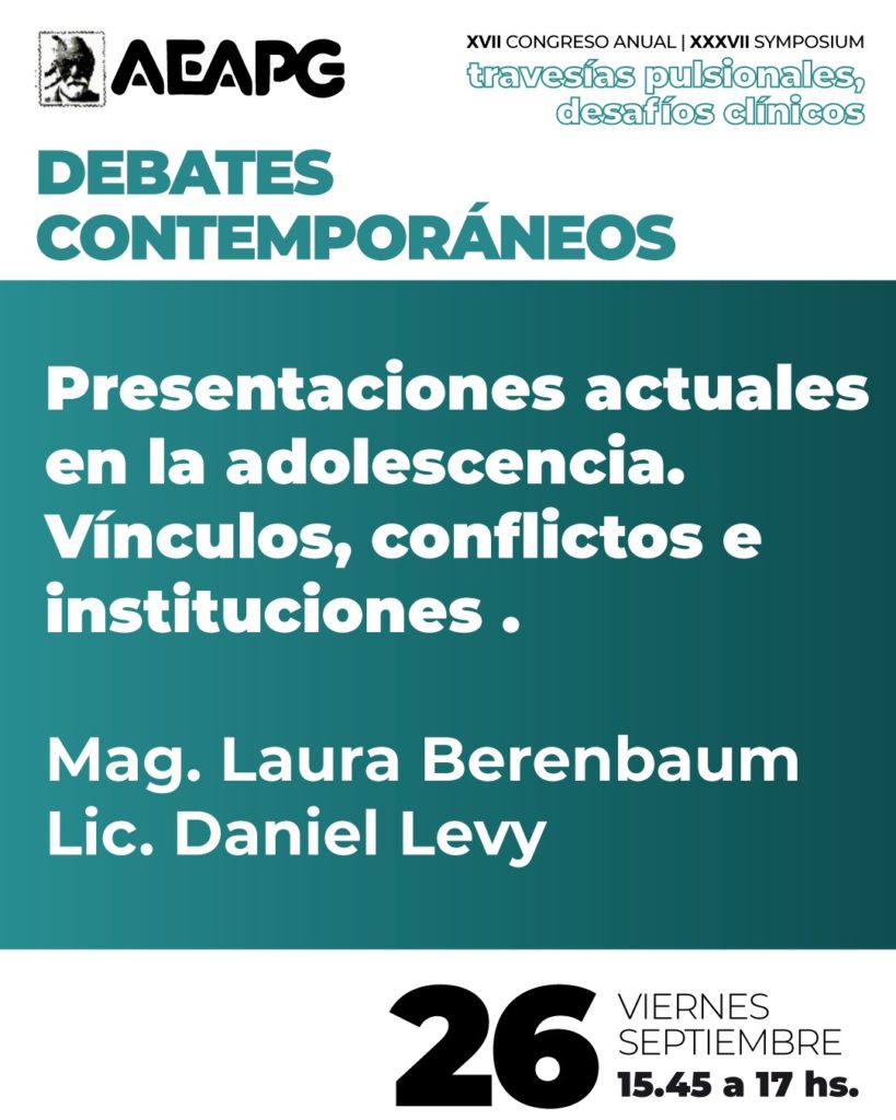 - PRESENTACIONES ACTUALES EN LA ADOLESCENCIA. VÍNCULOS, CONFLICTOS E INSTITUCIONES / Mag. Laura Berembaum – Lic. Daniel Levy