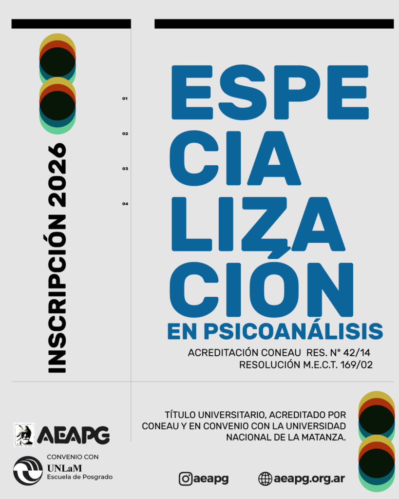Cumplimentando los requisitos establecidos en el Plan de Estudios se obtendrá el Título de Especialista en Psicoanálisis con orientación clínica en adultos.